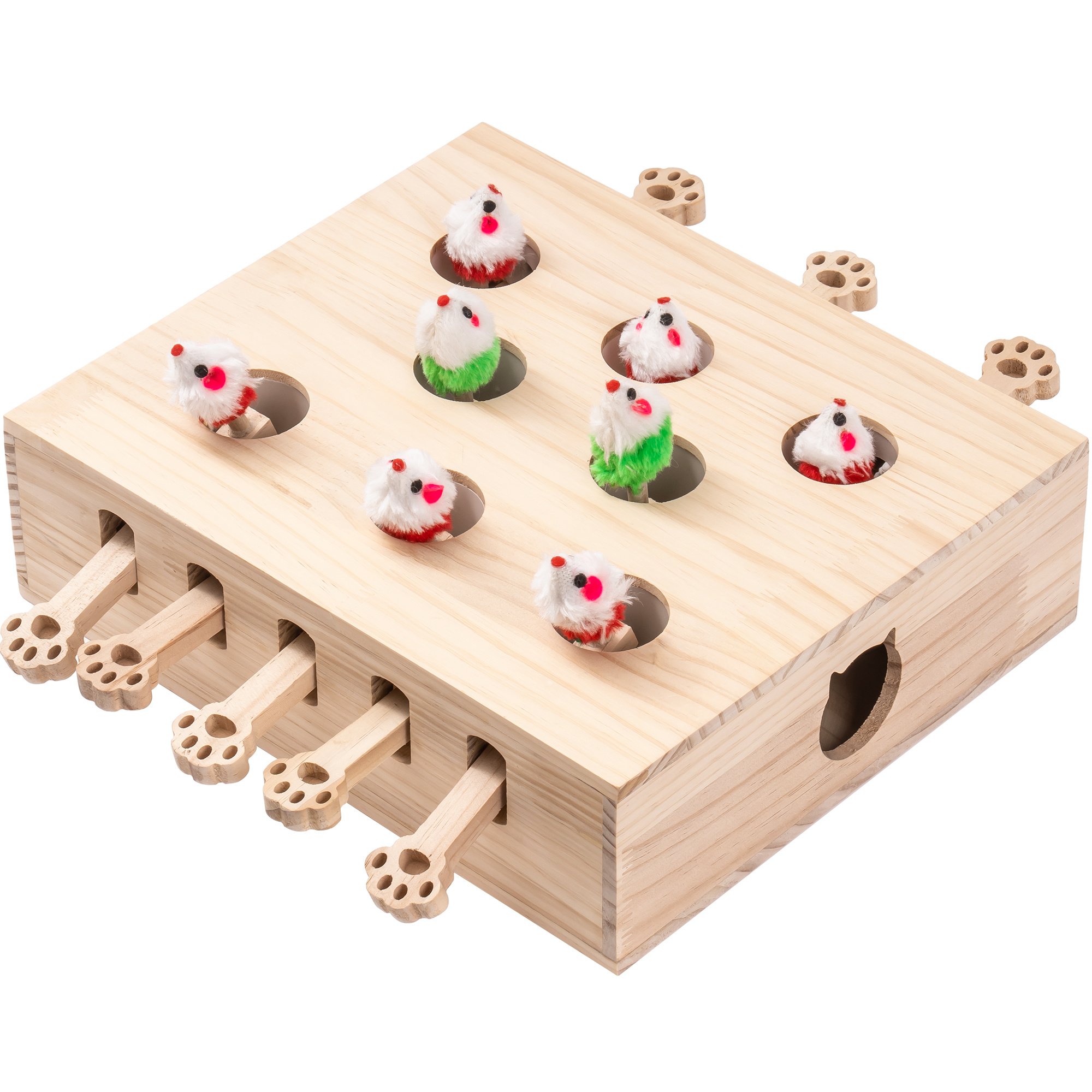 Cat Toys Interactive Whack-a-mole Solid Wood Toys for Indoor Cats Kitten Catch Mice Game